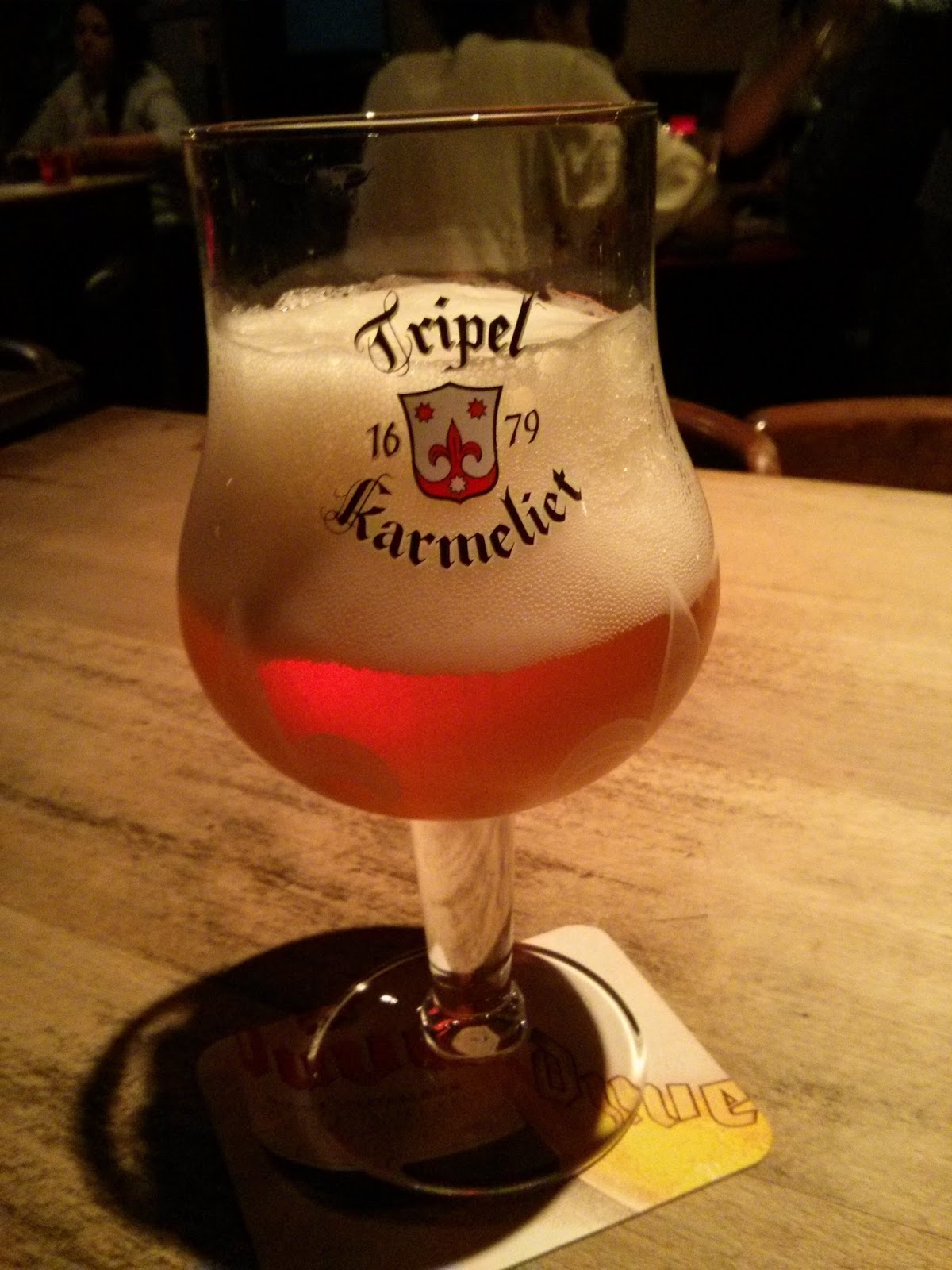 Yet another one that needs no introduction. I'd seen this one several times but never seemed to find a chance to drink it. I was at the surprisingly well-stocked bar at my hostel, and because I ordered it at happy hour (1€ per Jupiler, or something of the like), the bartender tried to change my mind. I smiled, shook my head and said, "I'm just craving a Karmeliet." It could have been straight out of a commercial. Remember, you saw it here first.